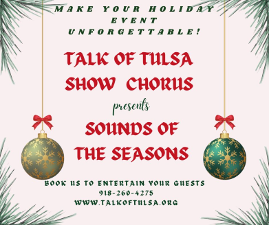 Why not hire Talk of Tulsa to entertain at your next event? We can perform at corporate functions, charity events, community entertainment events, birthday parties, christmas parties, awards nights, weddings, engagements, anniversaries, and even funerals and memorial services.
